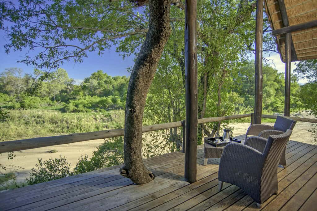 The Premier Suite at Kuname Safari Lodge is designed as the ultimate retreat for honeymooners. Secluded and intimate, it features an outdoor garden with a free-standing stone bath and open-air shower, inviting long moments of relaxation beneath the sky. Inside, elegant décor and warm natural tones create a cosy atmosphere, while a private balcony opens to views of the Kuvenyami River and surrounding wilderness. Romantic, private and deeply connected to place, it is a suite made for unforgettable moments.